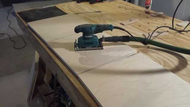 El panel fue cortado en cuadrados exactos de 17 "x 17", entonces haz lijado con 150 papel de cuadrícula.
