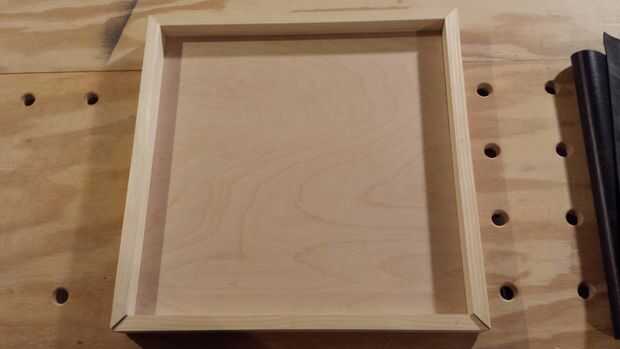 Durante el proceso de montaje, utilice pegamento y clavo pistola para poner en marcha. Utilice un trozo de 1/2" espaciador de madera debajo de la pared posterior durante el proceso de montaje para asegurar el espaciamiento correcto detrás de las imágenes, también proporcionan un espacio para uñas o listón para colgar en la pared. Asambleas entonces se sujetaron juntos después de pegamento y clavo seco durante la noche.