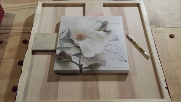- Filp sobre y clavo la imagen en el interior de las líneas de referencia de la parte trasera.