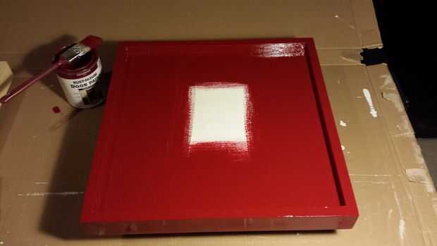 Tenemos cierta izquierda sobre la pintura de base puerta de aceite que era un rico color rojo intenso que nos han gustado, por lo que he pintado los marcos de fotos con él. Chico! Lo que un olor fuerte esa pintura a base de aceite fue! Mi sugerencia final no este cubierta, tuve que abrir las ventanas durante una hora con un funcionamiento de ventilador para deshacerse de ese olor...