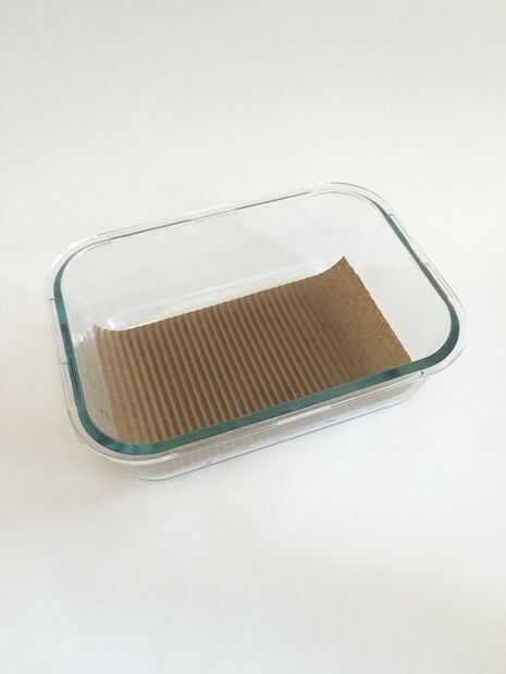 Añadir una capa de cartón a la parte inferior del envase, como se forma las capas que es necesario tener una hoja acanalada y una hoja plana, la capa corrugada da el espacio de micelio creciendo en. Alternativamente puede utilizar hojas acanaladas para todas las capas.