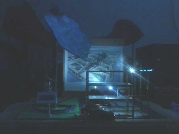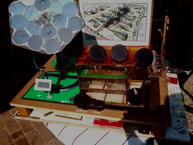 -El modelo durante el día con los paneles solares miniatura real carga de baterías.