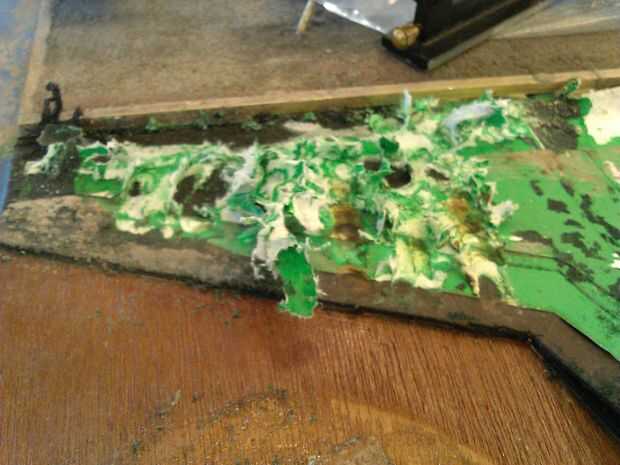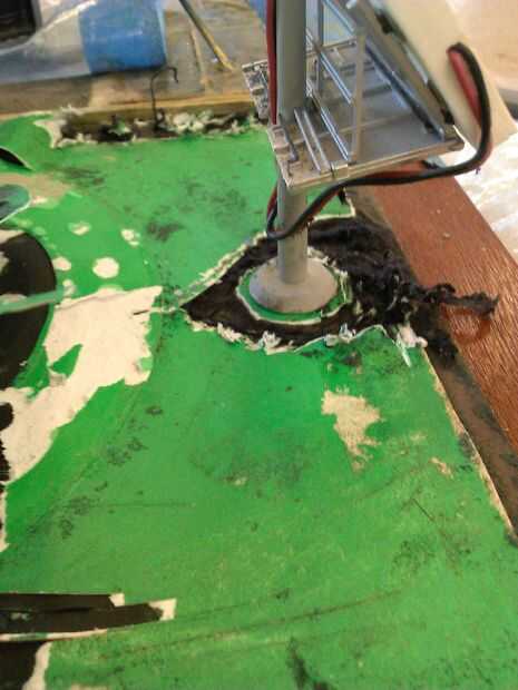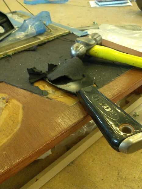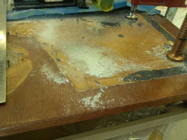 6). después de levantar el papel había grandes cantidades de pegamento que requería el uso de la Dremel para quitarlo.