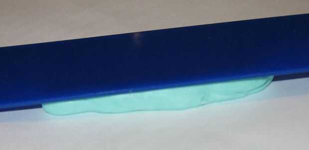 B. con cuidado, presione el objeto encontrado forma la mitad en el molde. Utilizando una regla plana de plástico puede ayudar a presionar el objeto uniformemente en el moldeado compuesto. Tienes una oportunidad para hacer las cosas bien y no violín con el objeto mientras se está poniendo el molde así que resista la tentación de levantar el objeto hacia fuera inmediatamente.