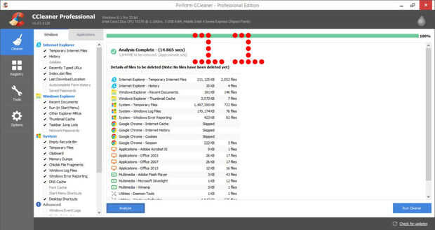 Borrar: CCleaner le mostrará lo que usted ha analizado/borrado y cuánto espacio ha liberado.