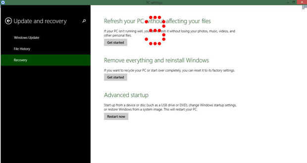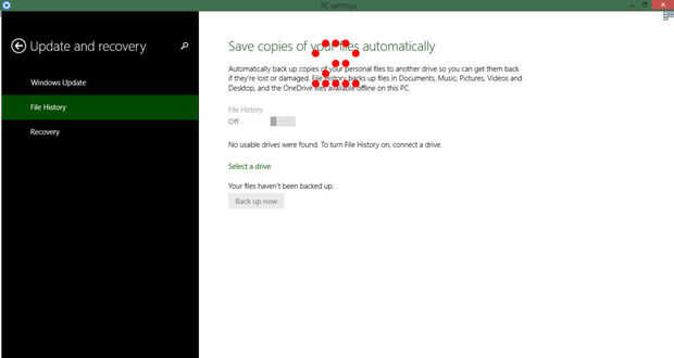Aquí, tienes tres opciones: Windows Update, la historia de archivo y recuperación de (aquí hay en el paso 3).