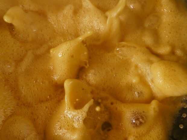 La mezcla espesa se vierte en una trama y se solidifica rápidamente.