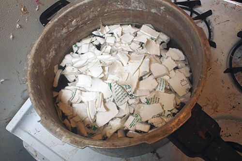 Que lejos hervir hasta que todo el papel es bueno y jugoso, por lo menos media hora o así. También puede ahorrar energía y dejar que los bits remojando la noche anterior en vez de hervir.