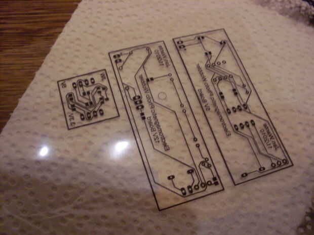 Una vez haya terminado el diseño de la PCB, necesita imprimir sobre una lámina transparente (tenga en cuenta que solo el circuito, rutas,... debe estar allí y no la componentsymbols).