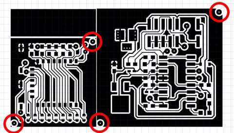 Hacer vias aisladas en la parte inferior izquierda y la parte superior derecha del patrón del PCB.