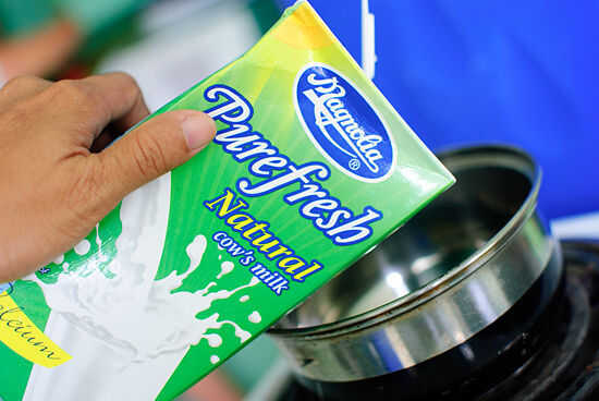 Vierta 125 ml (8 fl oz) de leche desnatada en una cacerola.