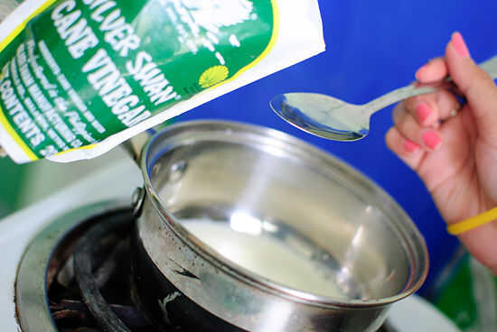 Añadir una cucharada de vinagre y removemos la mezcla. Continuar revolviendo aun cuando sólidos macizos de forma material en la superficie.