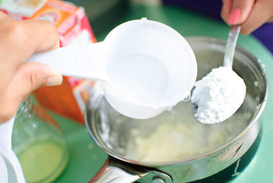 Agregar 100 ml (1/2 taza) de agua y una cucharada de bicarbonato de sodio al líquido.