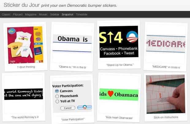 Etiqueta engomada du Jour, que tienen diseños de pegatina para el parachoques de dominio público, o diseñar su propio. Etiqueta engomada du Jour pone a disposición los archivos de páginas originales por sus diseños, por lo que rápidamente puede modificar un diseño en algo que es tuyo.