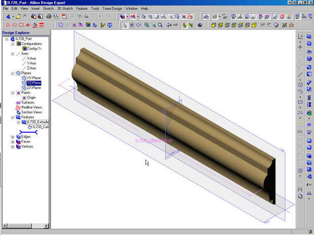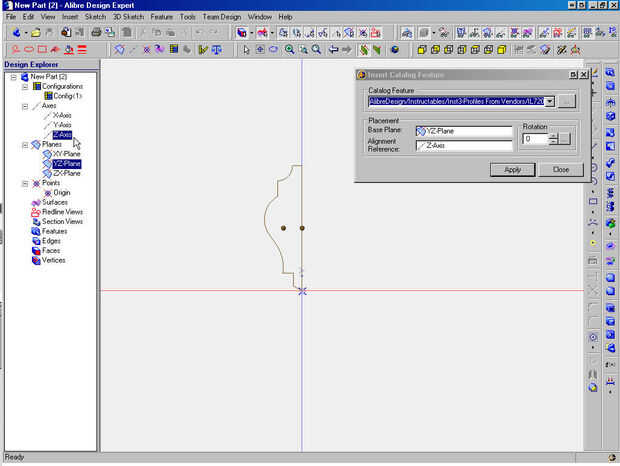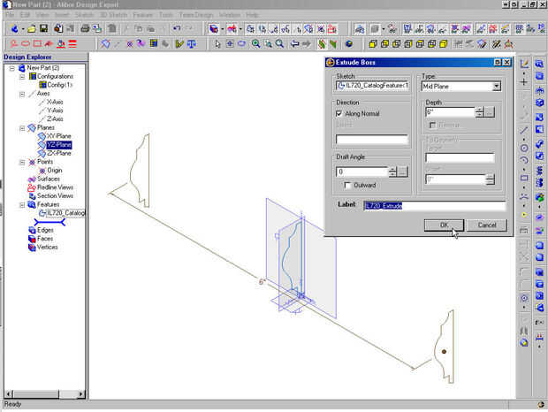 Ahora tiene una función de catálogo se puede insertar en el plano de referencia YZ para crear su moldeado.