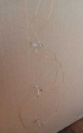 Todas las cosas que usted necesita:(1) las tachuelas azul(2) Papeles A4 (uno limpio y otro reciclado)(3) hilo de rosca (yo uso hilo dental aquí.)(4) dos abandonaron las perillasSi eres lo suficientemente listo, no necesita ver los siguientes pasos. U