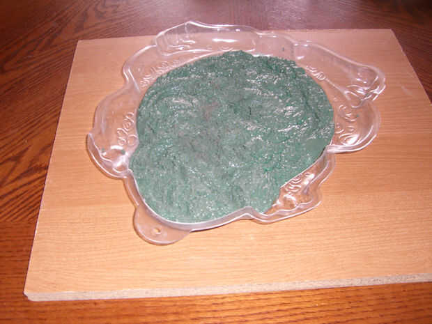 Llene el molde alrededor de la mitad completo y luego levante el borde del tablero y rebote o golpear hacia abajo sobre la superficie de trabajo muchas veces para ayudar a salir burbujas de aire.