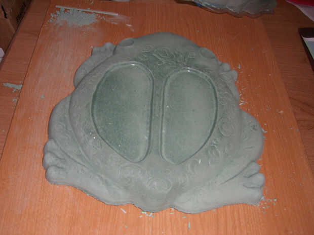 Elimine cualquier material suelto con la mano y dar la piedra unas horas de secado y curado a tiempo para el área que fue en la parte inferior del molde al aire libre.