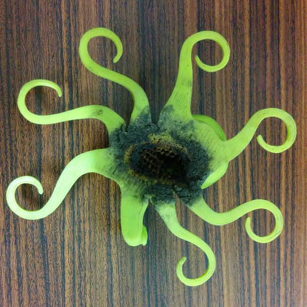 También se intentó un vertimiento directo sobre un Rocktopus ABS, similar a cómo echamos al Moldlay Marvin. Como se puede ver, incluso a > 1000 grados F el ABS apenas se desvaneció en todos.