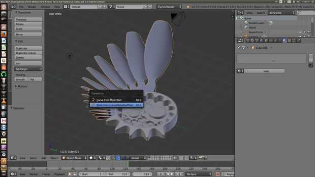 Para hacer los engranajes parecen que tienen un eje me sacó sólo el centro del engranaje para arriba y luego sacó otra vez. Presione Alt T y establecer en el centro para llevar a este relleno en la fabricación de los engranajes como se sostiene a un árbol.
