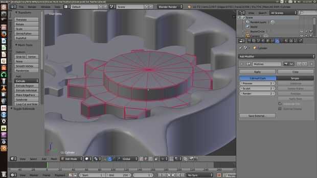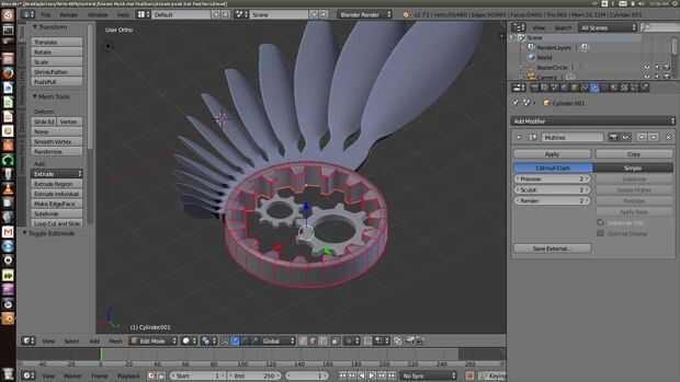 Llena en el engranaje interno añadido unos dientes al exterior y añade un modificador multires igual que los engranajes en el primer paso.