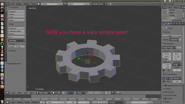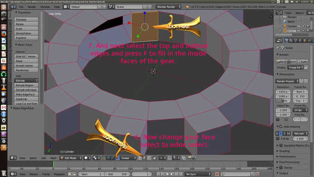 7. a continuación seleccione los bordes superior e inferior y pulse F para rellenar el interior caras del engranaje.