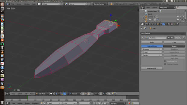 Para hacer esto agregar unos más recortes de lazo en el centro de la hoja presione Mayús mientras hace clic en los bordes para seleccionar el corte todo lazo. A continuación, presione S para ampliar eso lazo del corte solamente. Obtener la forma que mira a la derecha por el escalamiento del lazo corta.