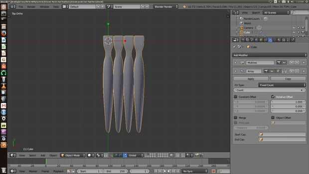 Primero llegó al icono de llave inglesa y añadir un modificador de matriz a la hoja de hélice y añadir un número a tu nueva matriz. El número va a cambiar pero esta es nuestra forma de probar lo que estamos haciendo.