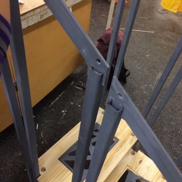 se trata de un prototipo a escala completa de un sistema de articulación que podría encontrarse en cualquier sistema del marco del espacio.  las conexiones entre la bola y el tubo de aluminio están basado en la fricción.  el objetivo de esta junta fu