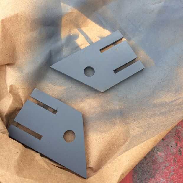 • 3/16" espesor piezas de placa de acero fueron diseñadas digitalmente y corte por chorro de agua para obtener exactitud en las articulaciones.