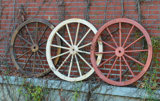Ruedas de carro de madera decorativo añadir rústico, país o decoración occidental habitación o paisaje.