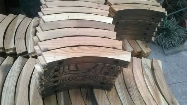 1. De 1/2" madera contrachapada cortadas seis discos 40" de diámetro. Una forma fácil de hacerlo es aclavar un clavo en el centro de la madera contrachapada y atar una cadena a ella (sin apretar para que sehará girar), atar el otro extremo a un
