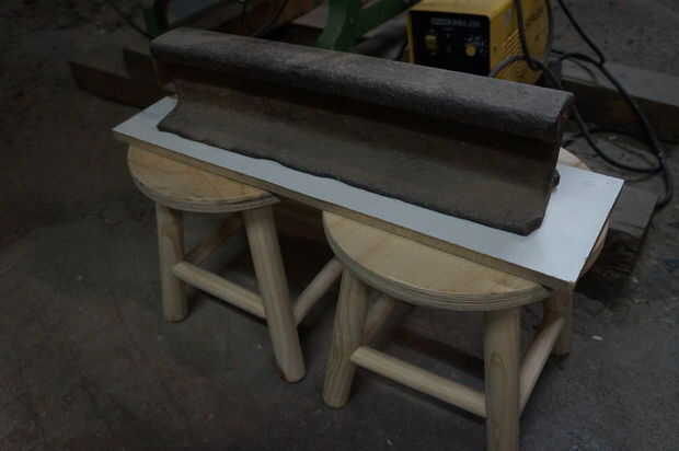 BFA mi tesis explora las maneras en tecnologías de fabricación digital pueden ayudar a mano de los artesanos.  Esta mecedora de madera contrachapada doblada fue esbozado inicialmente en Rhino3D, de que era capaz de fabricar un molde de prensa que ha