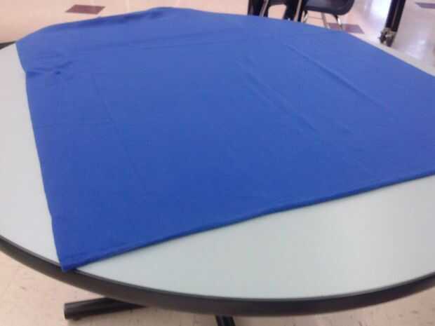 Pone en su tela sobre la mesa.
