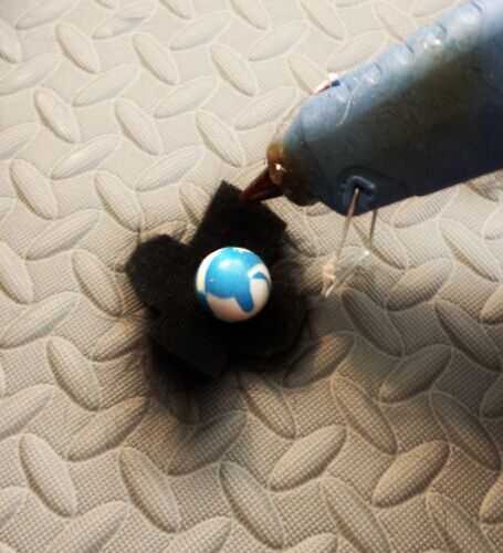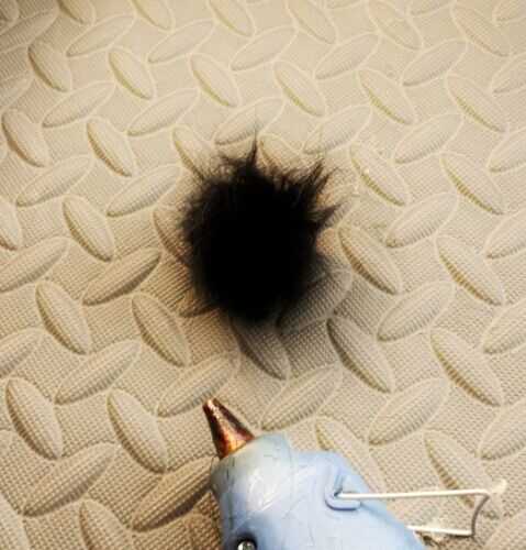 Material necesario: 1) negro tela Furry 2.) goma pelotas saltarinas 3.) bolitas de ojos saltones herramientas necesarias: 1.) Pistola de pegamento caliente 2.) Tijera 3.) Marcador de seguirme en