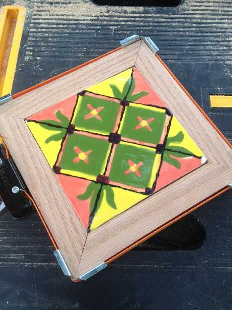 Apriete la abrazadera de banda primero sin los empalmes pegados para verificar cualquier ingletes abiertos. Usted puede también pruebe la colocación de la teja en la parte posterior del marco primero para asegurarse de que no hay espacios visibles.