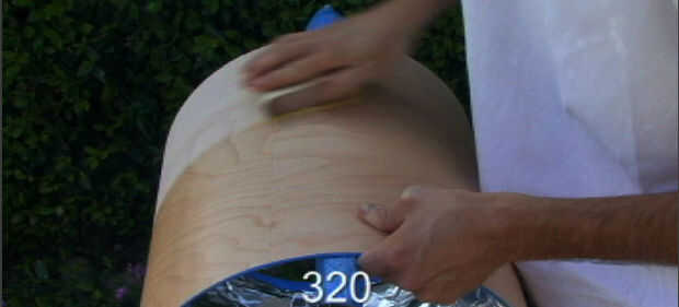 En la mañana lijar ligeramente la cáscara del tambor con papel #320 para una superficie suave y agradable. Fabricación del tambor es preparando: el producto final es tan bueno como el comienzo... así que ese bebé agradable y suave.