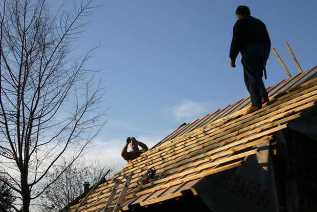 La longitud de estas piezas de madera viene en 4 metros, tiene el parece estar en la parte superior de una de las grandes vigas. Es una buena idea para dibujar la posición de cada pieza de madera con un hilo de tiza. no molestan cortando la viga en la longitud correcta, asegúrese de que sólo forma el techo de la proyección.