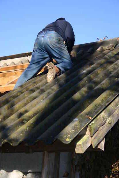 El asbesto es seguro al tacto, es sólo si llega a los pulmones que hay un problema. Esta forma de asbesto no muy friable por lo que el riesgo es bajo. Mi centro local de reciclaje no está equipado para manejarlos tipos de residuos, así que tuve que hacer arreglos especiales: estas cosas obviamente tienen que ser manejado con cuidado.