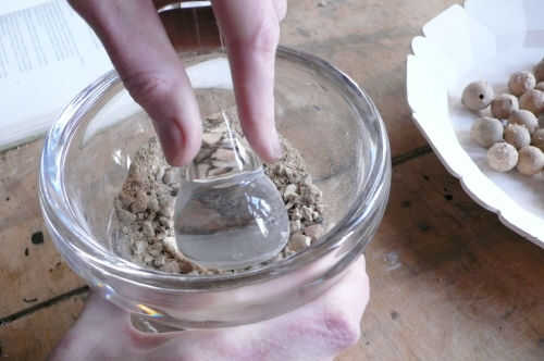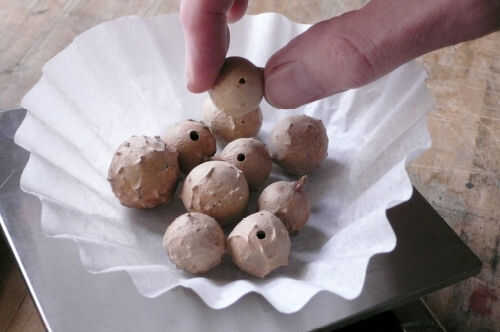 Después de secar, triturar roble agallas con mortero. Usted necesitará dos onzas de agallas de roble machacados.
