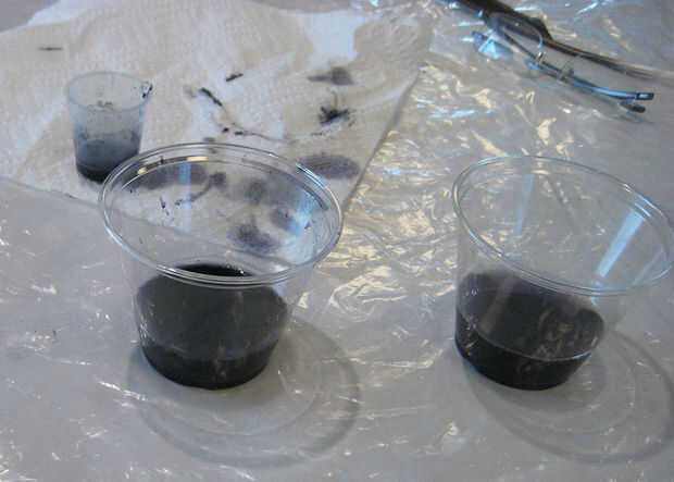 Tinta de la rozadura de hierro, cinco segundos más tarde. La goma arábiga se pueden agregar en este punto. Goma arábiga — secado savia del árbol de acacia de goma, tiene amplio uso como un material de arte, especialmente como la carpeta para la acuarela y el gouache. Como ingrediente en tinta de la rozadura de hierro, goma arábiga añade brillo y sustancia.