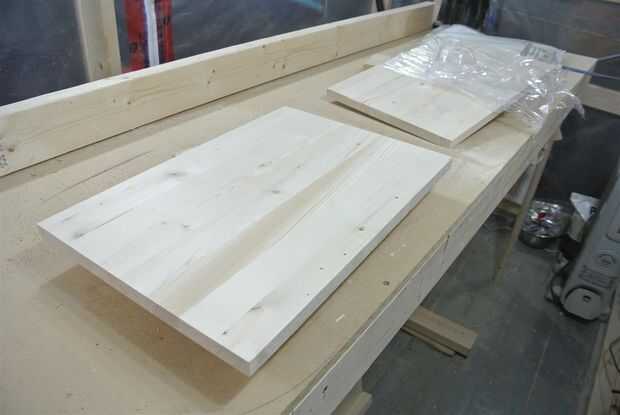 Mesa plegable se hace del barniz y pino finger jointed, manchado. El mecanismo de plegado era simplemente un 4' pieza de 1/4" redondo stock doblado en"u". Las bisagras son algunas bisagras de utilidad. En la olla unos pedazos de tubo eran soldados y agujeros taladrados para que el material redondo podría girar y doblar. Sobre la mesa una "Cala francés" fue agregado para que el material redondo tenía un lugar de la cuña y levantar la mesa. Esto es un mecanismo muy fuerte y funciona muy bien.
