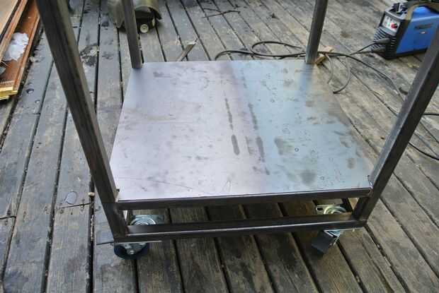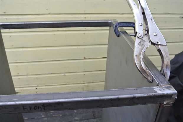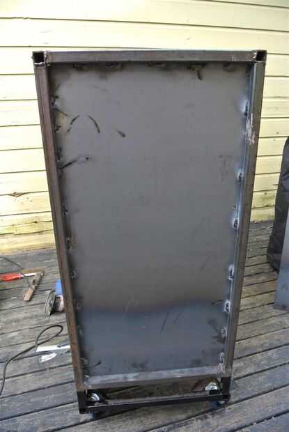 Primero el los lados izquierdos y derecho eran tachuela soldada en su lugar entonces la parte de atrás fue soldada con autógena en el lugar. Soldó con autógena en secciones pequeñas, hacia diferentes partes del marco para reducir al mínimo el combeo. Idealmente dos extra 1 "x 1" tubos deben han sido escalonadas verticalmente que le ayuda mantener deformación hacia abajo.