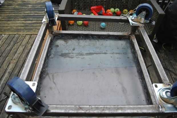 Para el techo algunas de acero del ángulo fue soldada con autógena el metal de hoja tenía un lugar para descansar y luego fue soldada con autógena en el lugar.