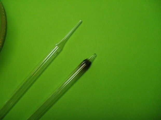Aquí cerré el fino extremo abierto de una pipeta de vidrio en una llama.