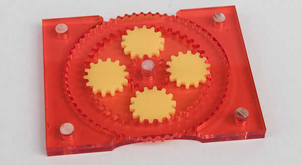 Un soporte del vino en la forma de trabajar, girando el engranaje planetario. Una adición agradable a su cocina geek.Elegir madera ya que va bien con el vino y adapta bien a mi interior. Supongo que vidrio acrílico transparente se vería muy bien en u