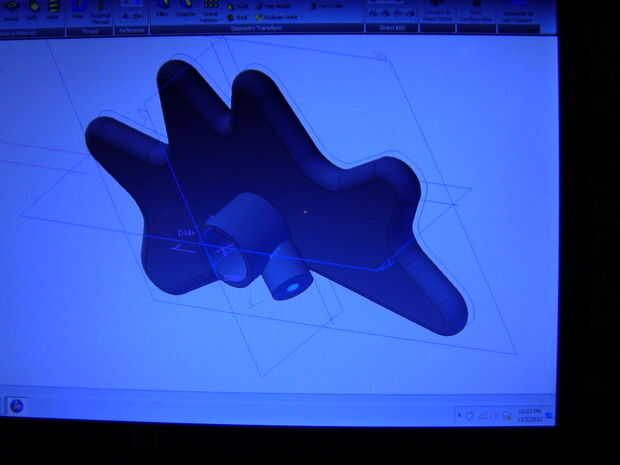 A continuación saca the0.375 área circular para el tornillo de sujeción. Se trata de un ángulo compuesto que sea a 45 grados en el plano xy y 20 grados en el plano Z-Y. Esto le permitirá fácil acceso para el tornillo de sujeción.