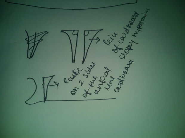 Para hacer la base u sólo tiene que añadir dos pequeños trangle de altura igual al ancho cartón línea central igual a la cubierta y la hipotenusa un poco limita al igual que naves originales