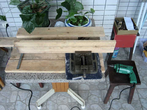 esta foto es de 1972.  Me muestra usando una sierra de mesa que hice con una sierra de mano eléctrica, también conocido como una sierra circular.Algunos dirán, "¿por qué molestarse?" ya que ahora puede comprar una sierra de mesa de bajo costo pa