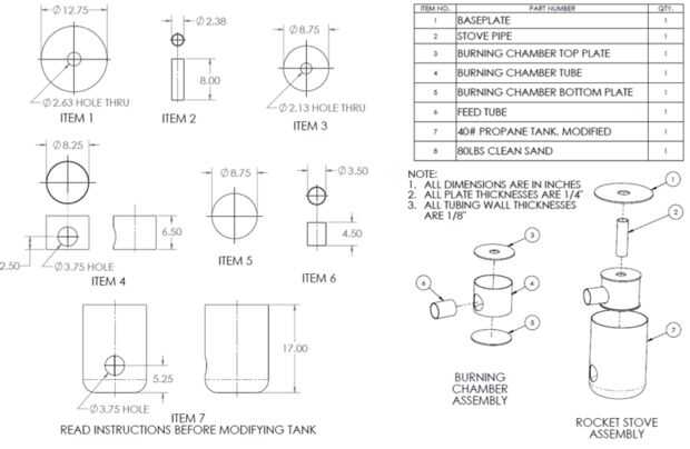 Cambios pueden ser hechos a los materiales en el esquema según sus preferencias personales o según la disponibilidad de materiales. Materiales para la fabricación de las piernas de la estufa no están presentes porque muchas diversas configuraciones pueden ser aceptables. Cualquier diseño puede ser aceptado por preferencia personal, siempre y cuando sea capaz de soportar por lo menos 100 libras y soportar altas temperaturas para este modelo.
